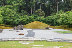 万葉集にゆかりの深い春日野の地に、約300種の萬葉植物を植栽する日本で最も古い萬葉植物園として昭和7年に開園。この園内の「萬葉の園」と「藤の園」の間に、「春日群芳園・かすがぐんほうえん」が完成いたしました。神仏習合の祈りの歴史をふまえ復興された寝殿造りの「藤霞殿・とうかでん」。春日宮曼荼羅を枯山水の庭で表現した「神庭・しんてい」。鎌倉時代の経蔵で明治時代に改築された丸い窓が特徴的な重要文化財「円窓・まるまど」、神山春日山の水源地からその名をとった茶室「香山・こうぜん」が含まれます。