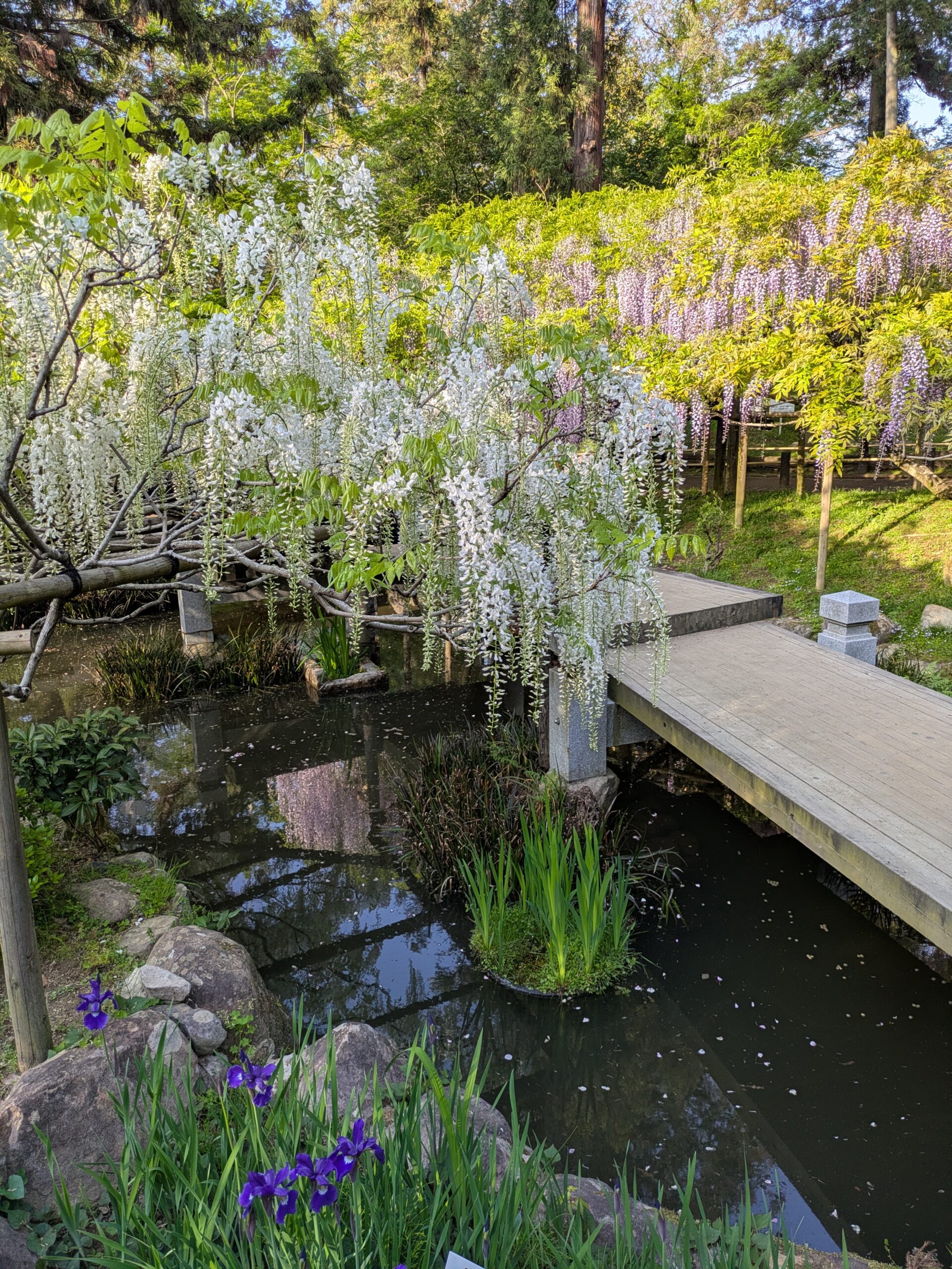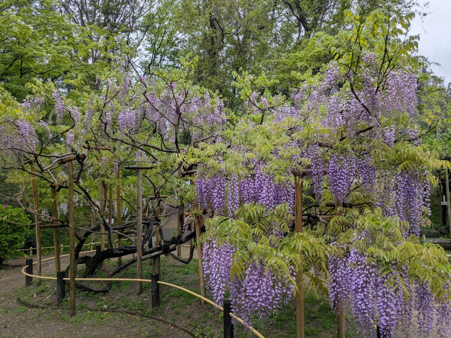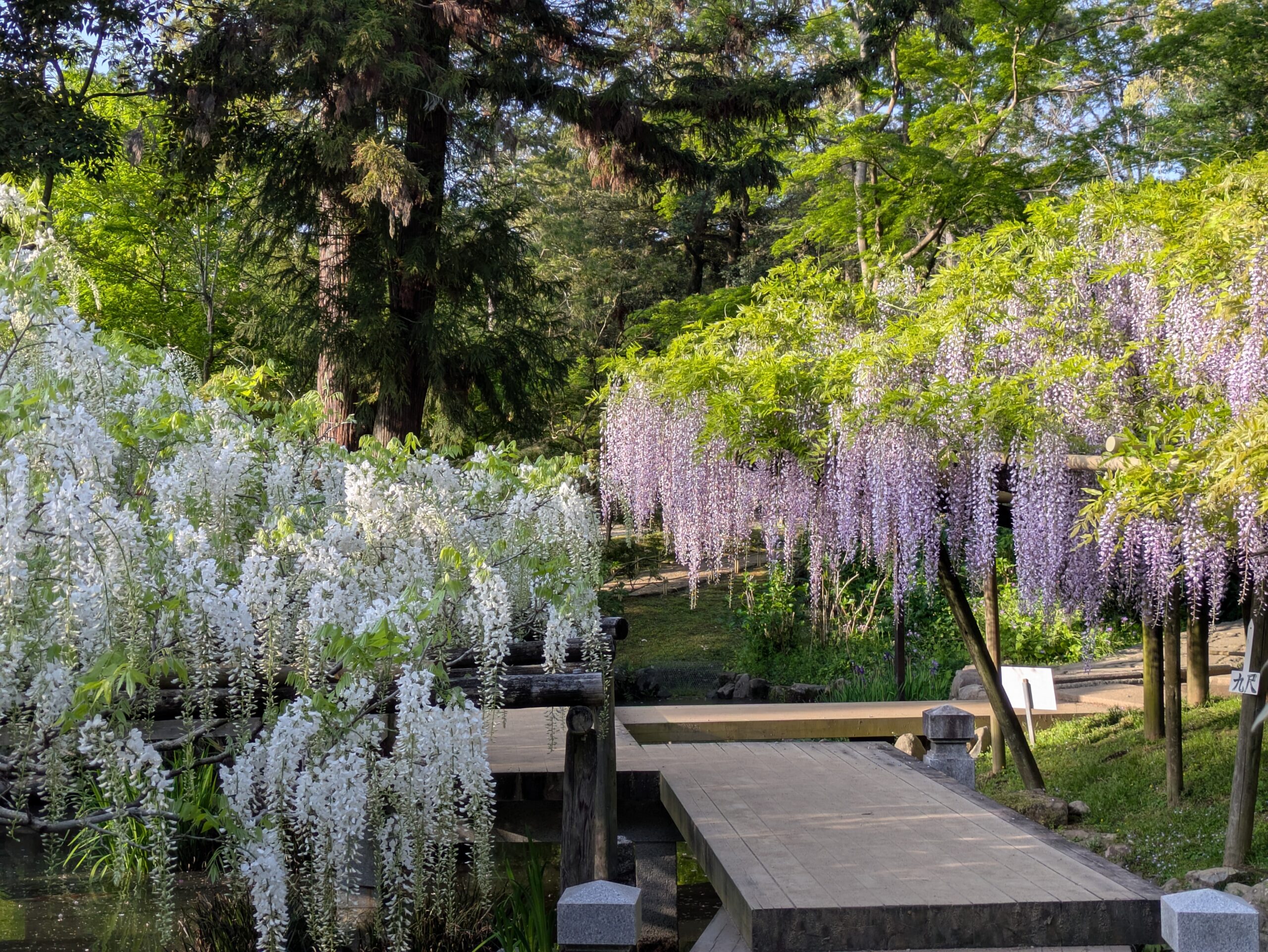 令和8年4月26日〔日〕 フジの開花情報 萬葉植物園(令和8年4月26日) 現在、早咲き品種は終わりかけに入り、中頃咲き品種、遅咲き品種が開花しています。 今後の気候により開花状況は大きく変動しますので、 1日でも早くお越しになることをおすすめいたします。 <<一覧に戻る
